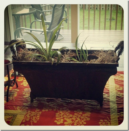 My pumpkin seeds were really strong, but they ended up wimping out…I think they needed more root space. But my sugar snap peas, cucumbers and peppers came up good from seed. I got everything in the box this past Saturday. This is my second year for the box garden, we had pretty good luck with it last year!